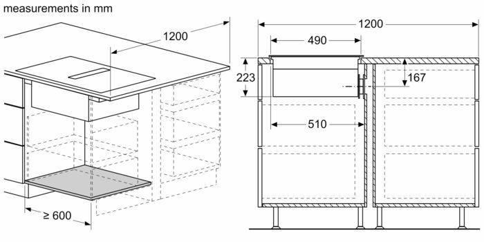 Схема встраивания 2 для варочной панели Neff V56NBS1L0