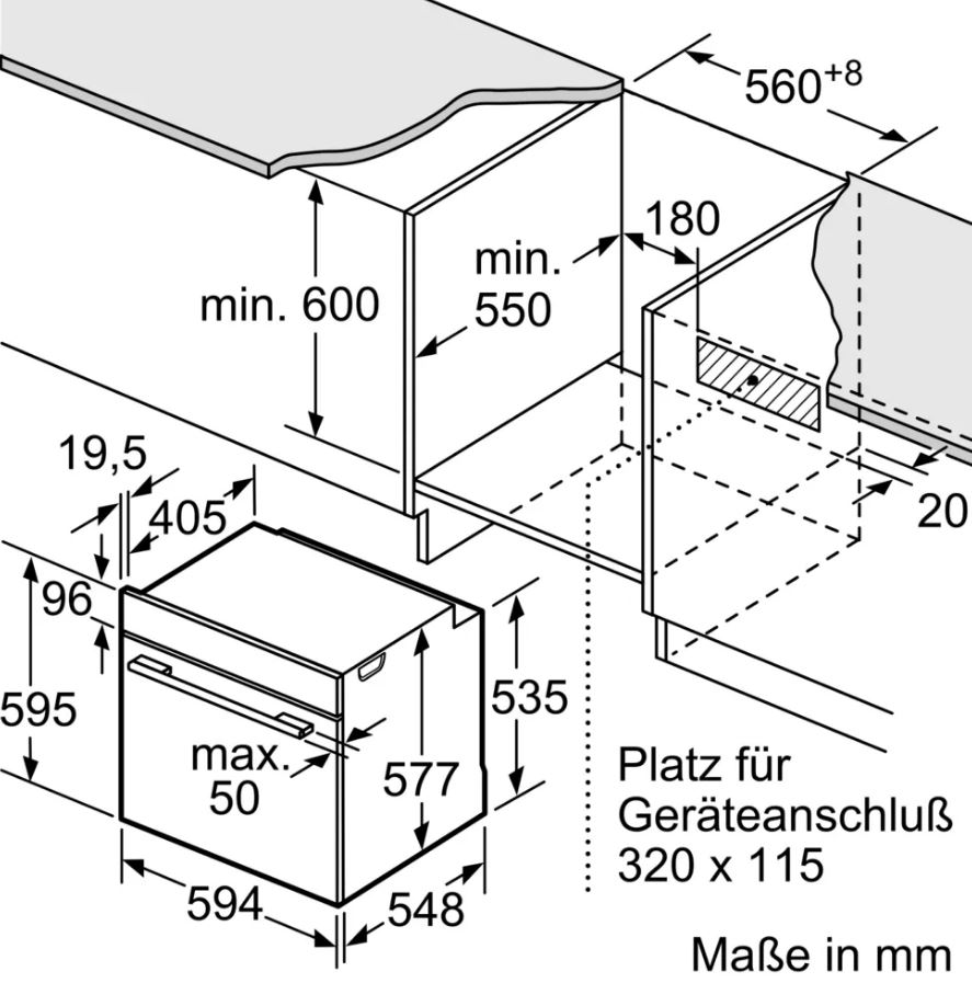 Схема встраивания для духового шкафа Neff B6ACJ7AG3