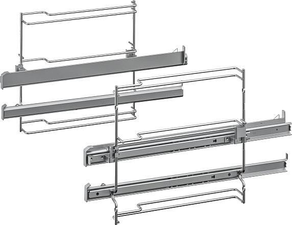 Телескопические направляющие Neff Z11TJ25X0 на 2 уровня, один из которых — VarioClip. Обеспечат выдвижение противней без дополнительных усилий.