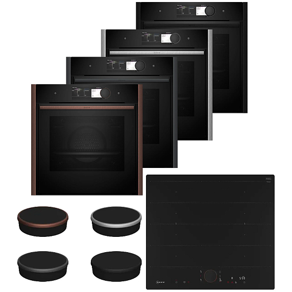 В комплект коллекции FLEX DESIGN входит индукционная варочная панель Neff T66PYY4C0 и компактный духовой шкаф с микроволнами Neff B69FY5CY0. Цвет комплекта можно выбрать по желанию.