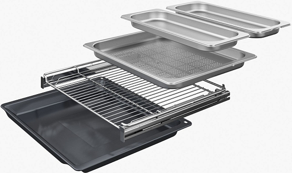FullSteam — приготовление на пару. Приборы с FullSteam объединяют в себе функции духового шкафа и пароварки. Можно готовить на традиционных режимах, на пару и при помощи комбинированных программ. В новых моделях резервуар для воды скрывается за панелью управления, чтобы наполнить его, не нужно открывать дверцу, как в приборах предыдущего поколения.