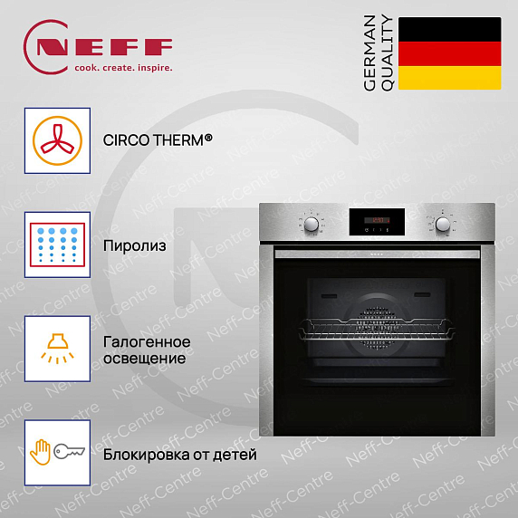 Духовой шкаф Нефф имеет класс энергопотребления А, что говорит о его высокой энергоэффективности. Функция Pyrolyse обеспечивает качественную пиролитическую очистку, нагревая прибор до 500°C, благодаря чему все загрязнения просто сгорают.