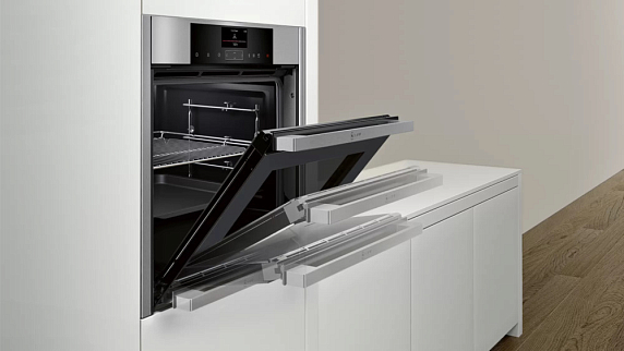 Духовой шкаф Neff B45FS24N0 — это инновационное устройство, которое идеально подойдет для тех, кто ценит качество, стиль и функциональность в своей кухне. С его помощью вы сможете приготовить разнообразные блюда с непревзойденным вкусом и ароматом, благодаря системе Full Steam. Особенность этой модели — уникальное решение для дверцы, которое называется SLIDE & HIDE. При открытии она плавно скользит в сторону, освобождая доступ к продуктам внутри духового шкафа. Это не только облегчает процесс приготовления, но и придает устройству стильный и современный вид.