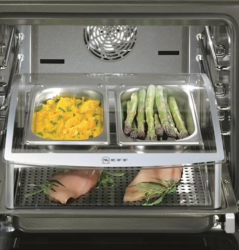 Прибор позволяет не только жарить или запекать, но и готовить сложные блюда и даже консервацию. Для этого после всей предварительной подготовки установите универсальный противень на первый уровень, поставьте на него банки и включите режим «CircoTherm®» с температурой 160 °C. Как только на банках появятся капли воды, выключайте духовку. Процесс получается быстро и эффектным.