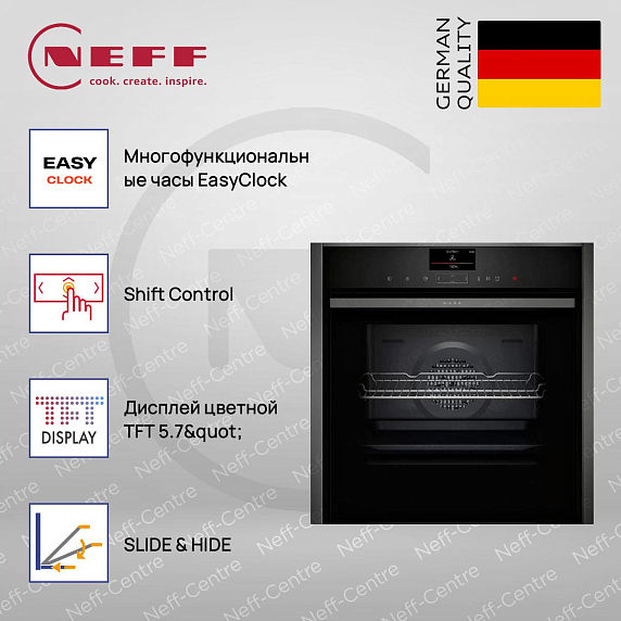 Встраиваемый духовой шкаф Neff B47FS22G0 — это модель с возможностью приготовления на пару FullSteam и дверцей SLIDE & HIDE®.