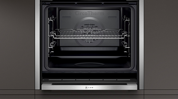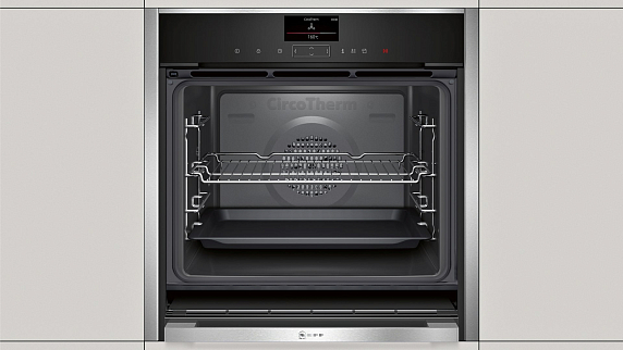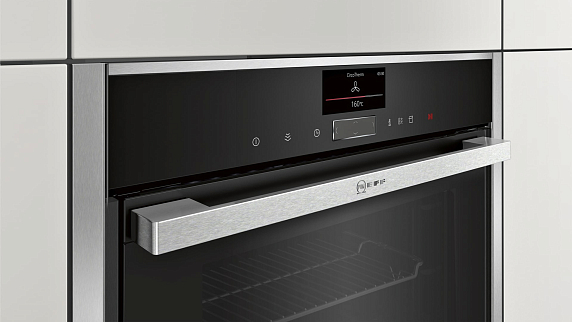 Духовой шкаф Neff B47FS22H0 оснащен цветным TFT-дисплеем диагональю 4.1, при помощи которого можно выбирать нужную программу для готовки, а также устанавливать таймер или отсрочку старта. Они помогут при приготовлении еды и оповестят звуковым сигналом о завершении процесса. Встроенная система очистки EasyClean позволяет, благодаря высокой температуре, на особом покрытии внутренней части прибора быстро размягчать грязь и жир, которые потом легко удалить мягкой тряпкой.