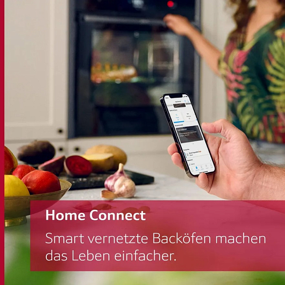 Поддержка технологии Home Connect позволяет управлять техникой через смартфон: запускать программы, получать уведомления и даже загружать автоматические рецепты. Электронный контроль температуры (от 30 до 275 C) с индикацией фактического значения обеспечивает точность на каждом этапе приготовления.