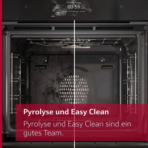 Пиролиз — программа самоочистки духового шкафа. Духовка нагревается почти до 500°C, все загрязнения просто сгорают. Поэтому после остывания внутренние стенки прибора нужно просто протереть от пепла. После очистки поверхности выглядят, как новые.