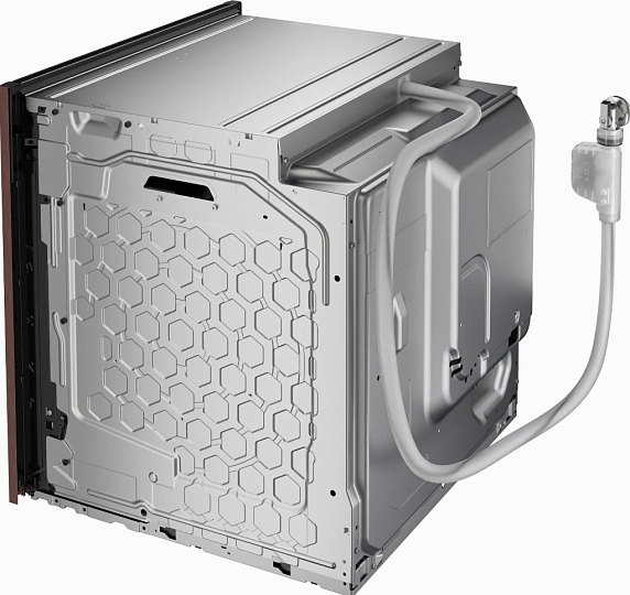 Особое внимание заслуживает технология FullSteam, которая обеспечивает 100% влажность в камере. Это позволяет сохранить сочность мяса, нежность овощей и текстуру круп, а также значительно сократить время приготовления некоторых блюд. Подключение к водопроводу делает использование паровых функций полностью автоматизированным — не нужно постоянно доливать воду вручную.