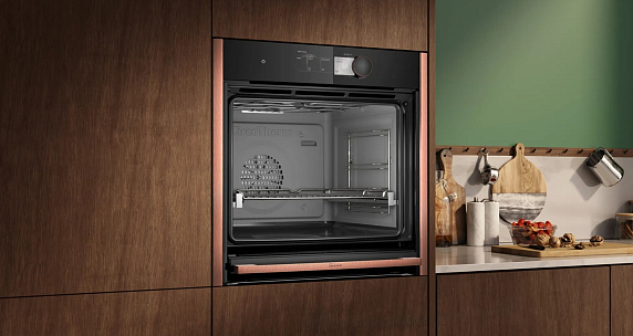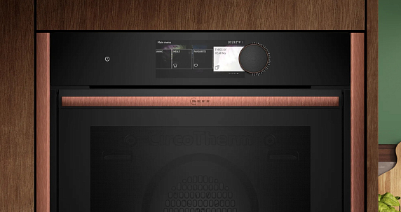 Сенсорные Full Touch Control переключатели и TFT дисплей обеспечивают удобство и простоту управления прибором. Кроме того, прибор оснащен функцией Home Connect, которая позволяет управлять им дистанционно с помощью смартфона или планшета. Для безопасности использования предусмотрены функции «Блокировка от детей», автоматическое защитное отключение духовки и индикация остаточного тепла. Класс энергопотребления A+ гарантирует экономичность использования прибора. В комплекте с духовым шкафом идут различные принадлежности, включая эмалированный противень для выпечки, решетку, универсальный противень, паросборник с отверстиями размера XL, губку, паросборник без отверстий размера M и паросборник с отверстиями размера M.