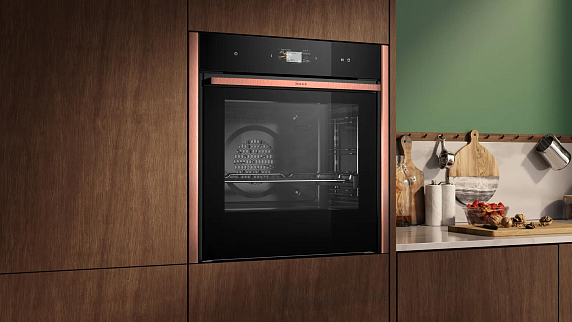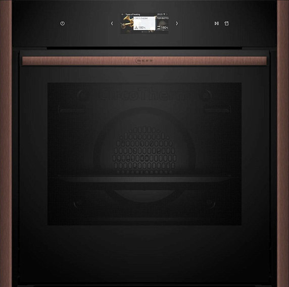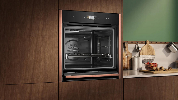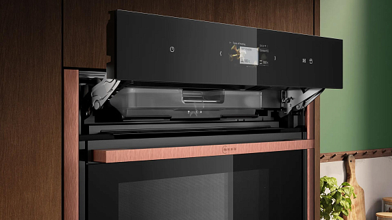 Духовой шкаф Neff B69VS7MY0 является современным кулинарным прибором, который сочетает в себе функциональность и стиль. Он выполнен в элегантном черном цвете, который легко впишется в любой интерьер кухни. Бронзовые элементы фурнитуры придают ему изысканный и премиальный вид, делая его не только удобным помощником на кухне, но и стильным элементом декора. Основной особенностью этого духового шкафа является добавление пара — функция VarioSteam. Эта технология позволяет приготовить блюда, сохраняя все полезные вещества и витамины, а также делает ваши блюда нежными и сочными. Емкость резервуара для воды составляет 1 литр, а его расположение за выдвижной панелью управления упрощает процесс заполнения.