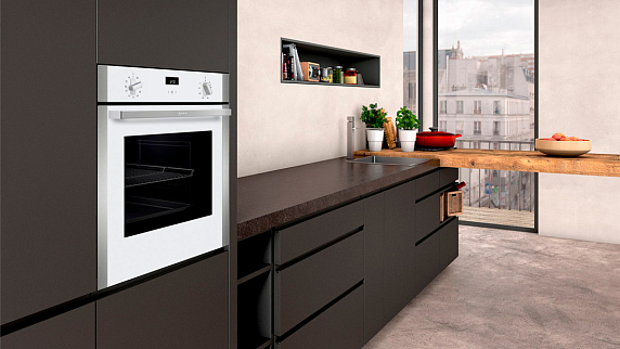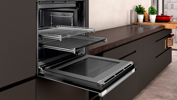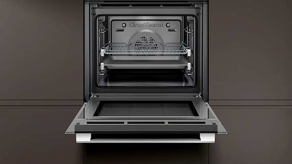 Специальные программы с конвекцией горячего воздуха помогут запечь мясо до хрустящей корочки при сохранении сочности и мягкости внутри. Телескопические направляющие на двух уровнях выдвигаются полностью и оснащены Stop функцией. Верхняя, задняя и боковые стенки покрыты панелями EcoClean. Дверца имеет трёхслойное остекление, наружное стекло нагревается не более чем до 40°С.