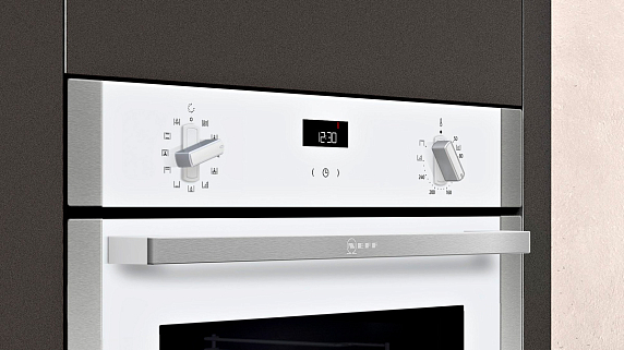 Многофункциональные часы EasyClock — это разработка Neff для встраиваемых приборов (духовки, микроволновки, пароварки. Это цифровой дисплей с кнопочным или сенсорным управлением. Когда прибор не работает, то EasyClock — это просто электронные часы, на которых отображается время. Во время приготовления блюд с их помощью можно настроить таймер (со звуковым сигналом, без него или с отключением). Технология EasyClock упрощает эксплуатацию прибора.