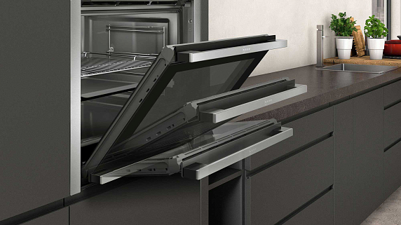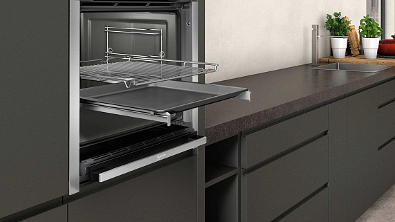 Благодаря тому, что этот духовой шкаф имеет автономную систему встраивания, его можно устанавливать в любом месте кухонного гарнитура, и таким образом избежать необходимости нагибаться. Ведь поставить прибор можно на любом уровне.