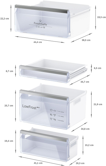 FreshSafe 3 (для встраиваемых и отдельностоящих) имеет две климатические зоны с температурой около 0°C, в которых овощи, фрукты, мясо и сыр остаются свежими в три раза дольше.