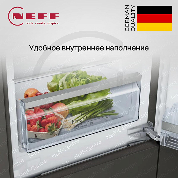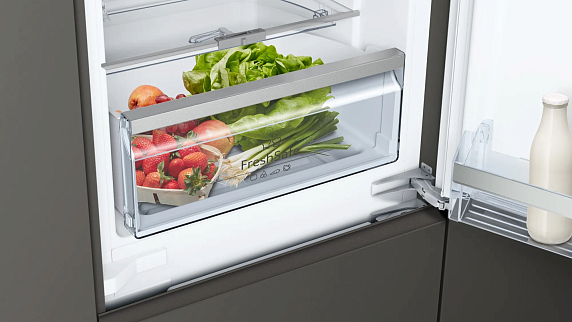 Холодильники Neff оборудованы зоной FreshSafe, специально разработанной для поддержания идеального уровня температуры и влажности. Эта инновационная функция позволяет создать оптимальные условия для хранения продуктов, поддерживая их в идеальном состоянии на значительно более длительный срок, чем обычные холодильные отсеки. Вам больше не придется беспокоиться о быстрой потере свежести ваших продуктов.
