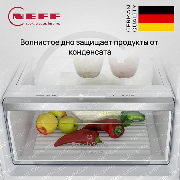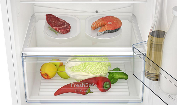 Холодильники Neff оборудованы зоной FreshSafe, специально разработанной для поддержания идеального уровня температуры и влажности. Эта инновационная функция позволяет создать оптимальные условия для хранения продуктов, поддерживая их в идеальном состоянии на значительно более длительный срок, чем обычные холодильные отсеки. Вам больше не придется беспокоиться о быстрой потере свежести ваших продуктов.