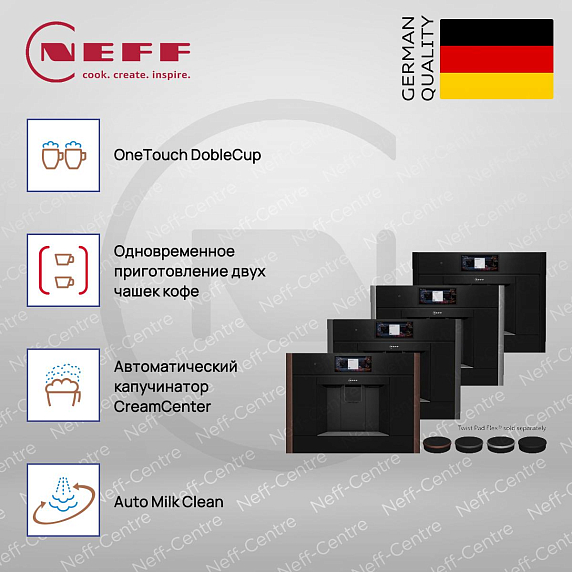 Показанный Тwist Раd Flех® и фурнитуры планок к кофемашинам NEFF не входит в комплект поставки и заказывается отдельно. Подробности уточняйте у менеджера при заказе.