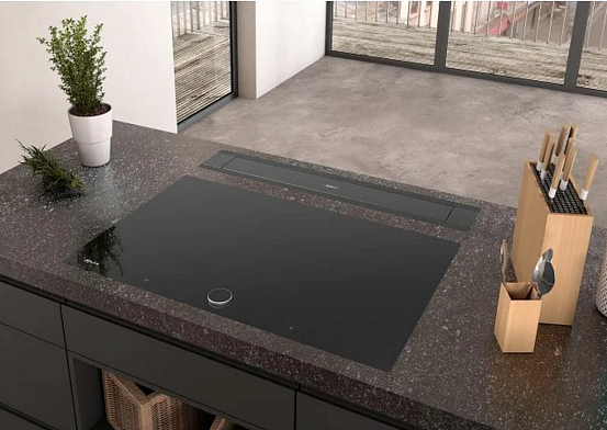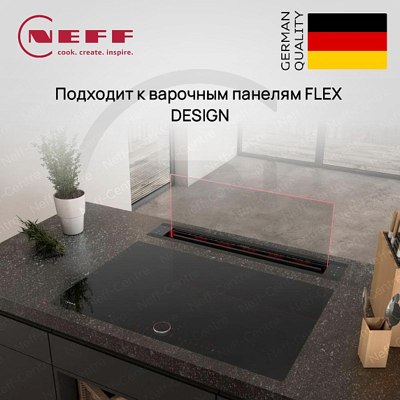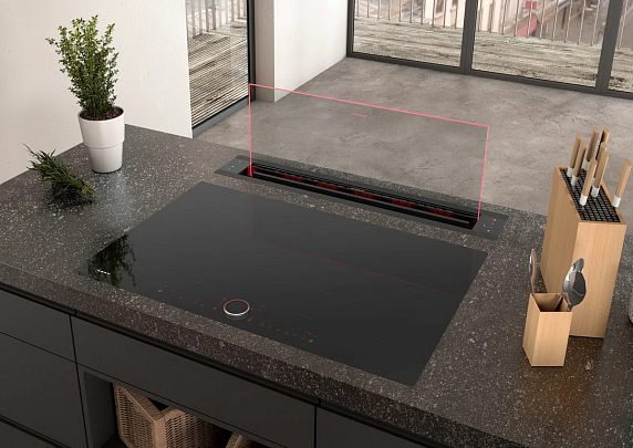 Кухонная вытяжка Neff I88WMM1Y7 из серии FLEX DESIGN представляет собой инновационное решение для современных кухонь — она встраивается непосредственно в столешницу, оставаясь полностью скрытой в выключенном состоянии.