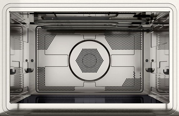 Система охлаждения включает в себя специальный вентилятор, разработанный для эффективного удаления горячего воздуха из рабочей камеры. Этот процесс осуществляется через передние решетки, что предотвращает перегрев внешних поверхностей. Это имеет важное значение, так как защищает не только мебель и окружающие предметы от повреждений, которые могут возникнуть из-за слишком высокой температуры, но и предотвращает повреждение панели управления.