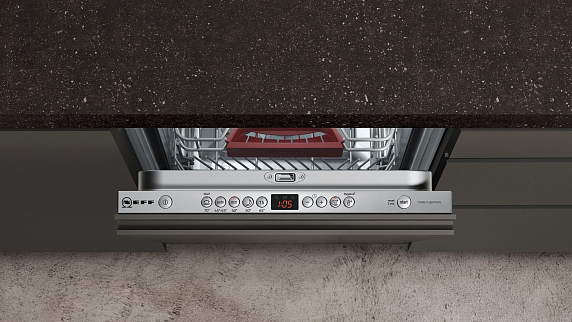 Функция половинной загрузки в посудомоечных машинах Neff позволяет запускать машину даже при неполной загрузке, автоматически адаптируя количество используемой воды и энергии к объему загруженной посуды. Благодаря этому, можно не дожидаться заполнения посудомойки, и при этом существенно экономить на потреблении воды и электроэнергии. Функция половинной загрузки идеально подходит для бытовых нужд небольших семей или в те дни, когда количество грязной посуды минимально, обеспечивая при этом высокую эффективность очистки и удобство использования