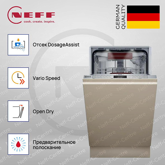 Встраиваемая посудомоечная машина Neff S857YMX02E — узкая модель, которую можно установить даже на небольшой кухне. Инновационная цеолитная технология сушки обеспечивает быстрое и качественное высушивание.