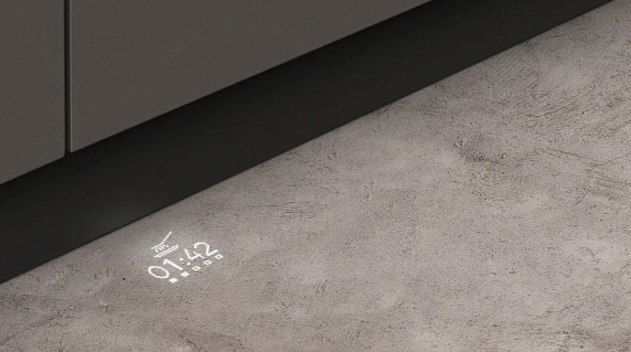 Цвет фасада — глубокий чёрный, придающий технике солидный и элегантный вид. Управление осуществляется с помощью сенсорных элементов, а индикация работы реализована через проекцию TimeLight: на полу отображается обратный отсчёт времени до завершения цикла. По окончании программы раздаётся акустический сигнал, информирующий пользователя о готовности посуды. Такой подход делает взаимодействие с техникой максимально простым и удобным даже в условиях ограниченного освещения. Внутренняя камера устройства изготовлена из высококачественной нержавеющей стали, устойчивой к коррозии, перепадам температур и агрессивным моющим средствам. Это обеспечивает не только долговечность, но и гигиеничность — поверхность легко очищается и не впитывает запахи. Внешние компоненты корпуса и дверцы выполнены из прочного термостойкого пластика с матовым покрытием, устойчивым к царапинам и воздействию пара. Фасад совместим с любыми материалами кухонного гарнитура, включая МДФ, дерево и стекло, что делает интеграцию в мебель полностью незаметной.