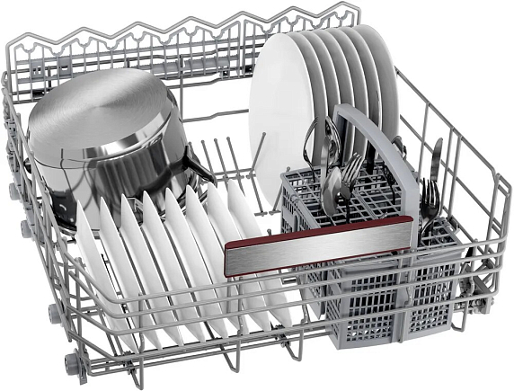 Вместимость до 13 комплектов посуды делает аппарат оптимальным выбором для семей и любителей принимать гостей. Две вместительные корзины, верхняя из которых регулируется по высоте благодаря системе RackMatic-3, позволяют легко размещать как крупные кастрюли, так и хрупкие бокалы. Для столовых приборов предусмотрена отдельная корзина в нижнем коробе, а складные направляющие для тарелок (8 штук) обеспечивают гибкость загрузки. Программа IntensiveZone/Power Zone справляется даже с сильно загрязнённой утварью, а функция Hygiene+ обеспечивает особую чистоту, что особенно важно для семей с маленькими детьми.