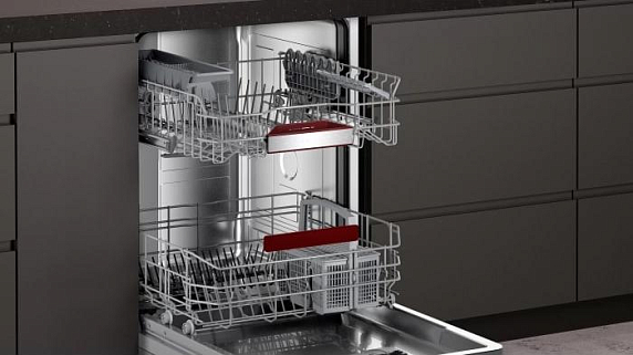 Система RackMatic-3 в посудомоечных машинах Neff преобразует процесс загрузки посуды, предоставляя пользователю безграничные возможности для оптимизации внутреннего пространства. Благодаря возможности легко поднимать или опускать верхний короб даже при полной загрузке, вы получаете свободу распоряжаться пространством посудомоечной машины согласно своим потребностям. Это особенно актуально, когда необходимо поместить внутрь высокие бокалы или крупногабаритные тарелки и кухонные принадлежности.