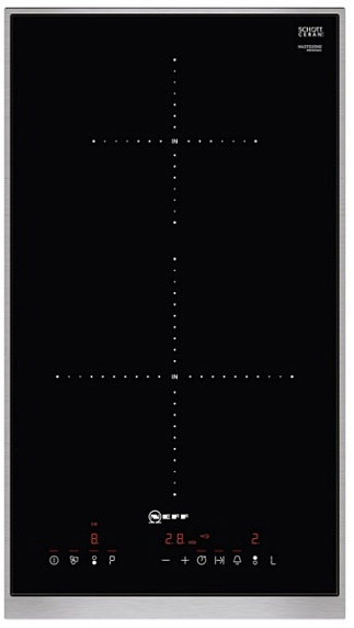 Нефф N43TD20N0 имеет сенсорное управление, переключатели позволяют выбрать одну из 17 степеней нагрева. Индикация готовности к работе и энергопотребления упростят использование. На дисплее отображается цифровой показатель выбранной мощности. Каждая конфорка управляется отдельно, однако предусмотрена общая кнопка включения-отключения. Важный нюанс: кабель данной панели не оснащен вилкой. Устройство произведено в Испании.