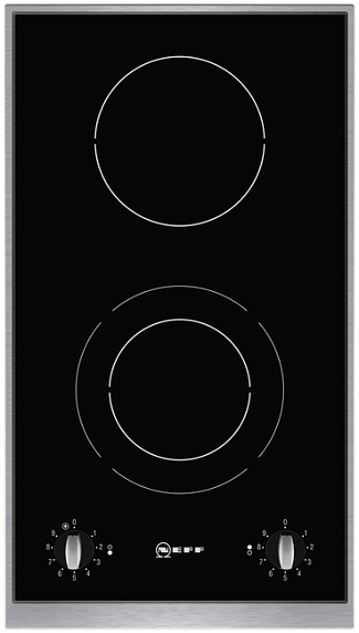 Панель имеет два нагревательных элемента системы HighSpeed, один из которых имеет расширенную зону нагрева. Управление панелью осуществляется при помощи поворотных переключателей, а нержавеющая сталь панели обеспечивает простоту ухода.