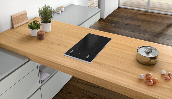 Дизайн модели продуман до мелочей. Поворотные переключатели не раскалятся от жара плиты, а край из нержавеющей стали защитит стеклокерамику от сколов и помешает пролитым жидкостям вытечь на соседние рабочие поверхности.
