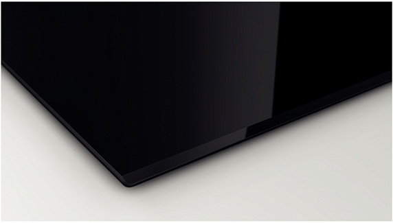 Материал — стеклокерамика черного цвета, стильная, немаркая, простая в уходе. Край скошенный, что упрощает монтаж и уборку рабочей поверхности, в швы не будут забиваться крошки, это также препятствует образованию плесени.