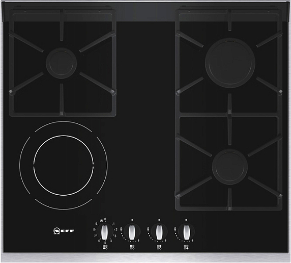 Варочная панель Neff T66M66N0 в классическом чёрном цвете с рамкой из нержавеющей стали отличается элегантностью дизайна и многофункциональностью. Автоматический электроподжиг добавляет лёгкости и комфорта при эксплуатации прибора. Термоэлектрическая защита блокирует подачу газа, если конфорка погасла. Индикация остаточного тепла защищает от возникновения ожогов.