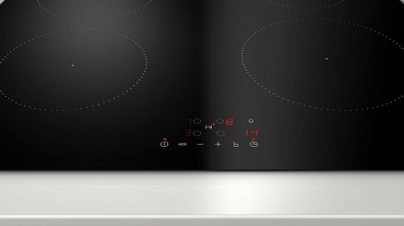 Техника оснащена четырьмя зонами нагрева с возможностью точной настройки мощности на девяти уровнях. Каждая зона поддерживает функцию Boost — кратковременное увеличение мощности для быстрого закипания воды или интенсивного обжаривания. Технология автоматического распознавания посуды активирует нагрев только при наличии совместимой посуды на поверхности. Сенсорное управление дополнено удобным таймером с обратным отсчётом для каждой зоны. По истечении заданного времени зона автоматически отключается, что особенно полезно при приготовлении блюд, требующих строгого соблюдения времени. Также реализована функция «Stop+Go» — при кратковременном нажатии на кнопку все активные зоны переходят в режим поддержания температуры, а повторное нажатие возвращает их к предыдущим настройкам. Это удобно при необходимости отвлечься во время готовки.