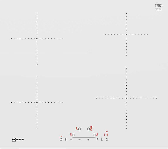 Индукционная варочная панель NEFF T36FD40W2 состоит из стеклокерамической поверхности ,что легко проводит тепло к зоне нагрева, оставляя остальную часть плиты достаточно прохладной. Это защищает пользователя от ожогов. Также имеется двухступенчатая индикация остаточного тепла для каждой конфорки. Она сообщит, когда прикасаться к ней безопасно. Если лампочка ещё горит, то зону можно использовать для разогрева пищи.