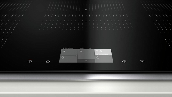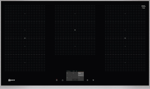 Управление Нефф T59TF6TN0 производится сенсорными кнопками, которые расположены на передней панели. Специальный датчик определяет наличие посуды на поверхности и включает индукторы, которые находятся именно под кастрюлей или сковородой. Это обеспечивает экономное расходование электричества.