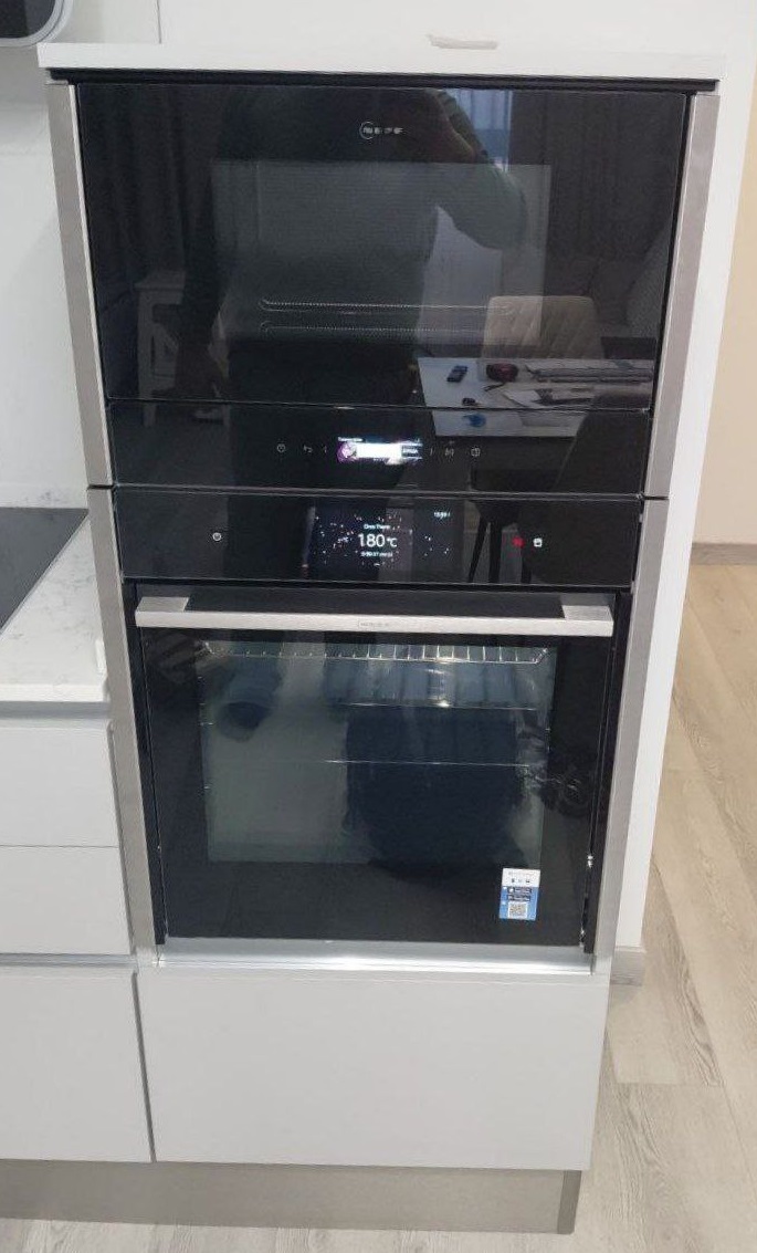 За время активной эксплуатации каких-либо существенных минусов выявлено не было. Устройство работает тихо, система охлаждения справляется со своей задачей эффективно, и корпус не перегревается даже после длительных циклов приготовления. Единственный момент, который можно отметить условно, это то, что дверной упор расположен только справа, и перенавесить его на левую сторону невозможно, однако для моей планировки кухни это не стало проблемой, так как зона доступа организована удобно. Некоторые могут счесть цену выше средней по рынку, но учитывая премиальные материалы камеры (нержавеющая сталь и керамика) и немецкое качество сборки бренда Neff, стоимость полностью оправдывает себя надежностью и функциональностью. Блокировка от детей работает корректно, ложных срабатываний или сложностей с активацией не возникло.