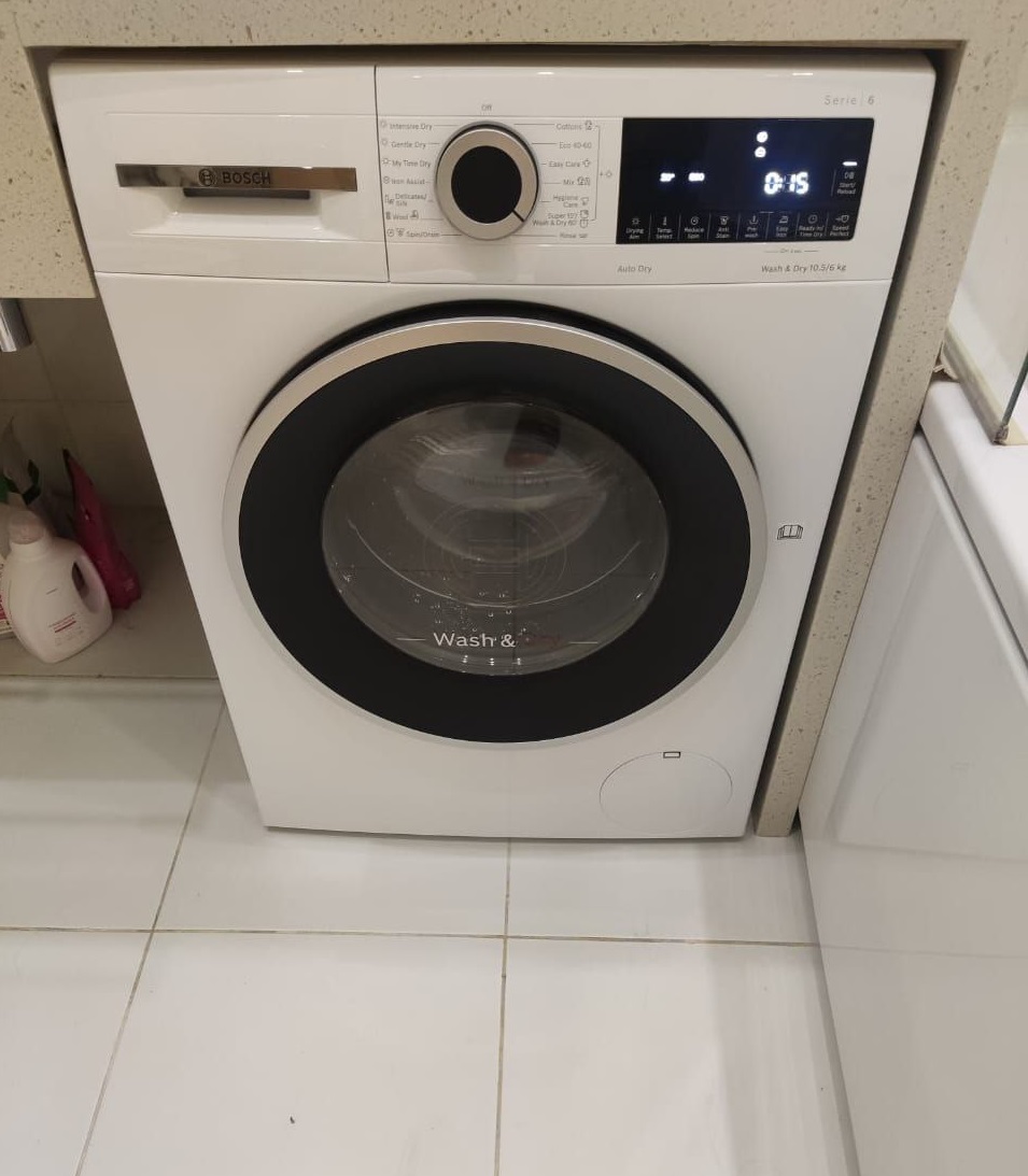 Покупкой стиральной машины Bosch Serie 6 я осталась абсолютно довольна — это настоящее облегчение в быту! Особенно впечатлила функция сушки: она не только экономит время, но и избавляет от необходимости сушить вещи на батарее или балконе, что особенно ценно в межсезонье. Загрузка до 10,5 кг при стирке — более чем достаточно для нашей семьи из четырёх человек, а даже при полной загрузке машина работает тихо и стабильно. Очень удобно, что есть отложенный старт на 24 часа: я ставлю стирку на ночь по тарифу «ночного» электричества, а утром уже достаю чистое и сухое бельё. Многофункциональный LED-дисплей и индикация времени до конца программы делают управление интуитивно понятным — даже моей маме, не слишком знакомой с техникой, всё сразу стало ясно. Система ActiveWater+ тоже работает отлично: вода распределяется точно по объёму белья, ничего не тратится впустую, а вещи прополаскиваются досконально.