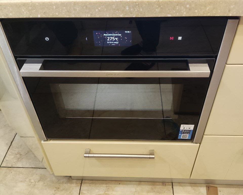 Также приятно, что есть функция быстрого разогрева и индикация фактической температуры — можно не гадать о готовности. Резервуар для воды удобно расположен за выдвижной панелью управления, пополнение не доставляет хлопот. Управлять духовкой дистанционно через Home Connect оказалось удобным утром, когда можно было предварительно разогреть её с телефона. В целом техника работает надёжно, всё интуитивно и эргономично, я действительно рада такому помощнику на кухне!